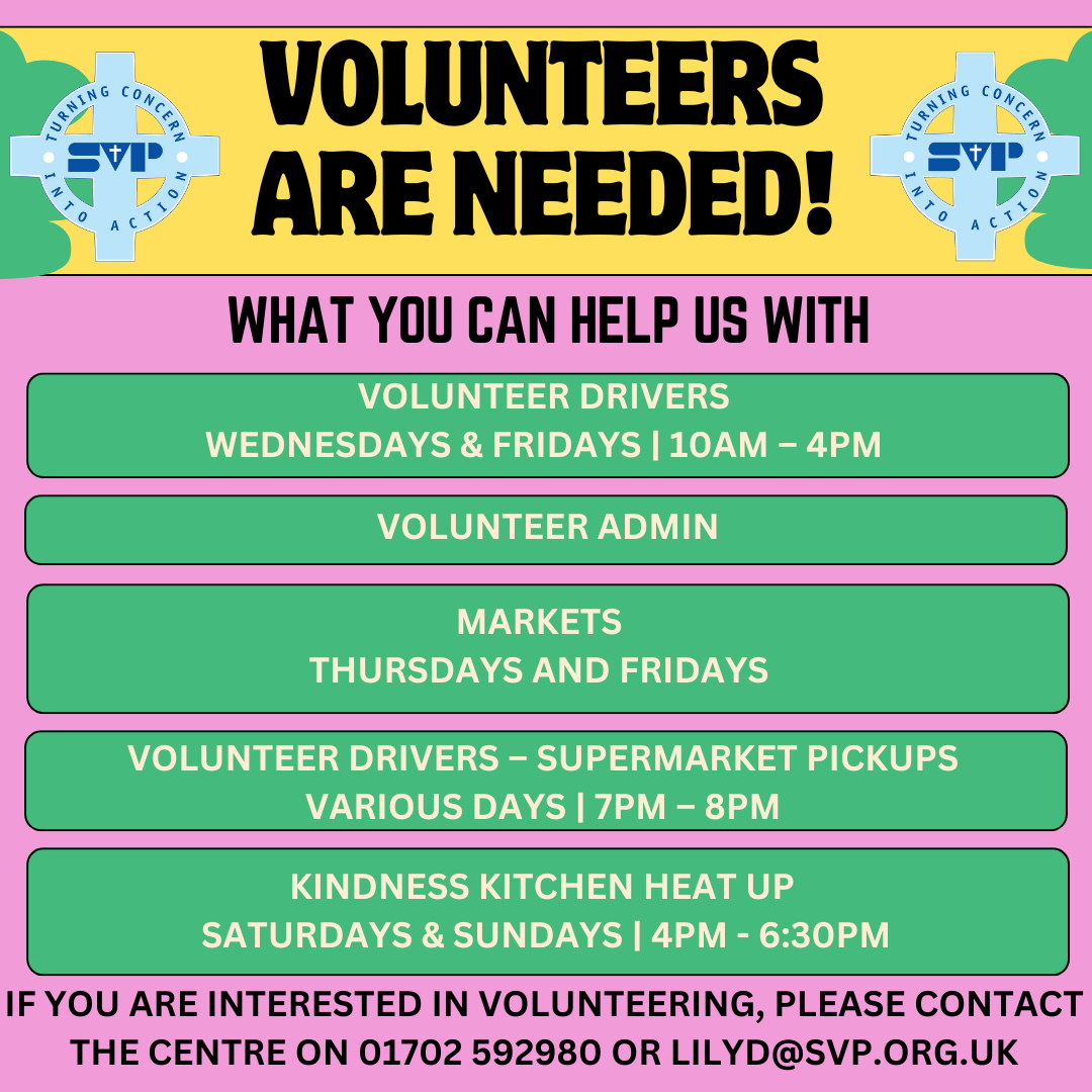 "I have been a volunteer with St Vincent's Southend since December 2020. I have seen first-hand the amazing work done by the team who provide help and support to approximately 300 vulnerable people per month." - Kenny